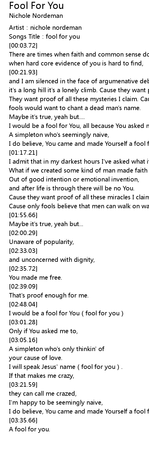 | [00:50.68] | I would be a fool for You, all because You asked me to. |