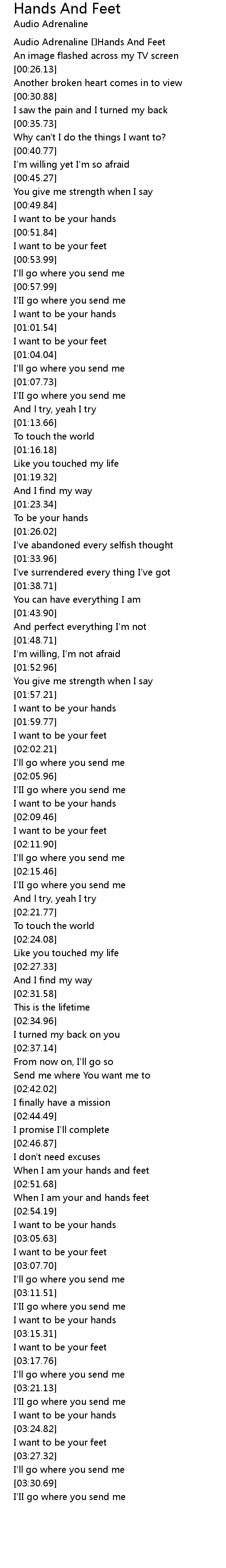 | [00:02.01] | Audio Adrenaline Hands And Feet |
