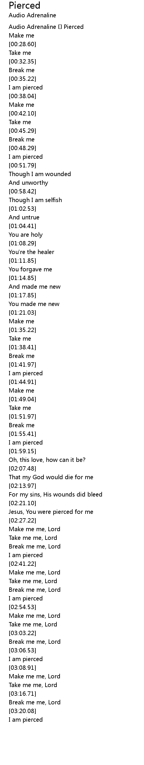 | [00:01.85] | Audio Adrenaline � Pierced |