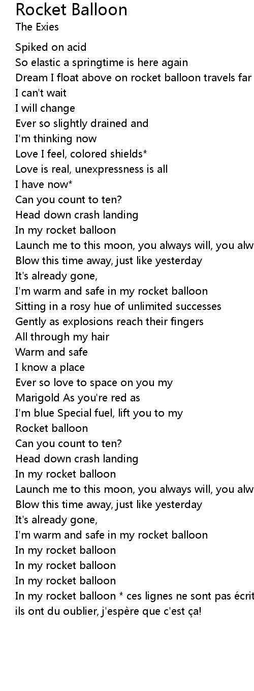 | In my rocket balloon ces lignes ne sont pas e crites dans la pochette album, ils ont du oublier, j' espe re que c' est a! |