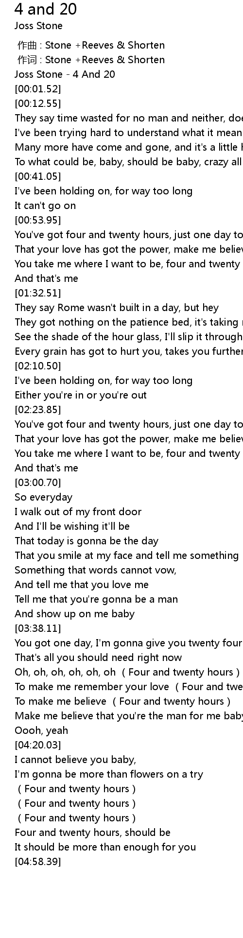 | [04:00.54] | To make me believe Four and twenty hours |