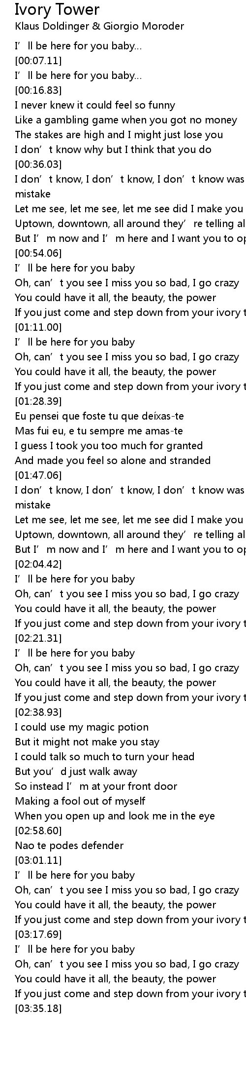 | [03:18.72] | I' ll be here for you baby |