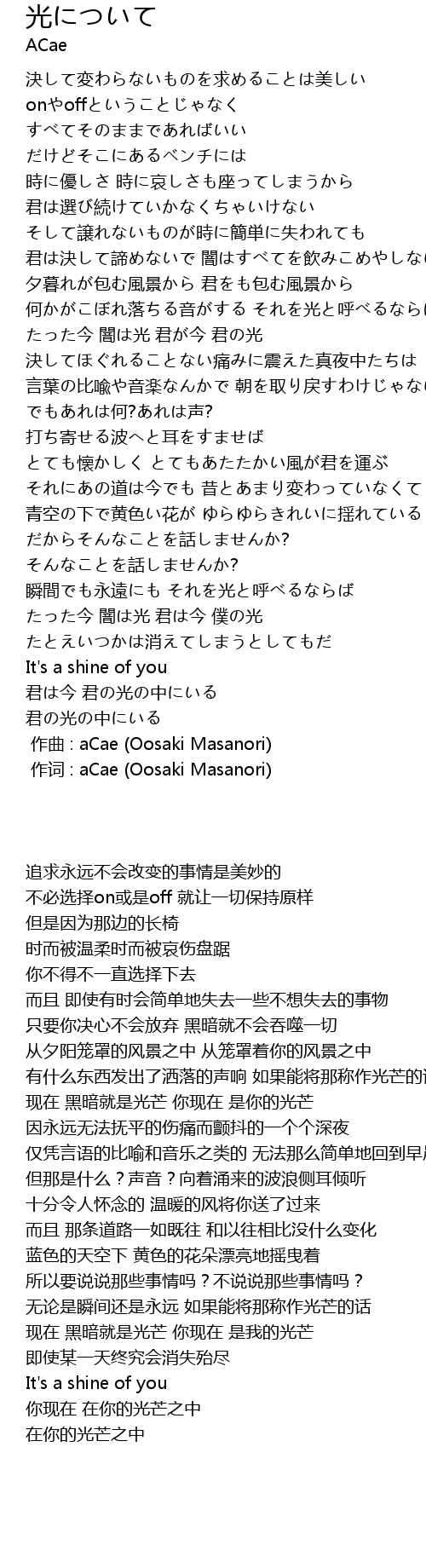 | [00:00.00] | zuo ci : aCae Oosaki Masanori |
