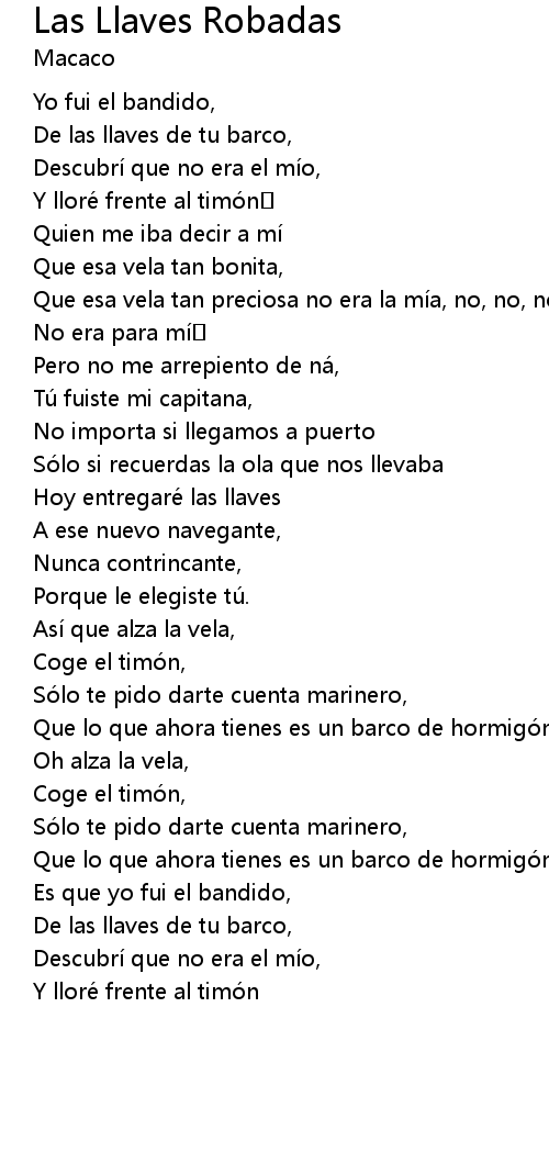 | 歌曲 | Las Llaves Robadas |