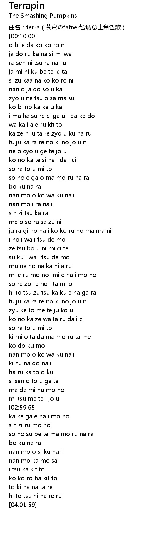 | [00:00.02] | 曲名:terra(苍穹のfafner皆城总士角色歌) |