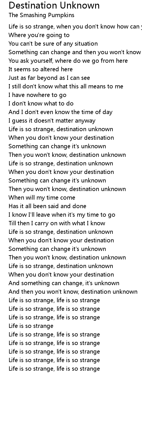 Then you won't know, destination unknown |