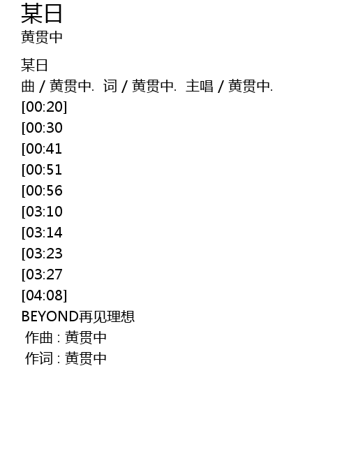 | [00:00.00] | 作词 : 黄贯中 |