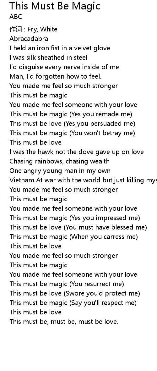 | This must be magic You won' t betray me | |