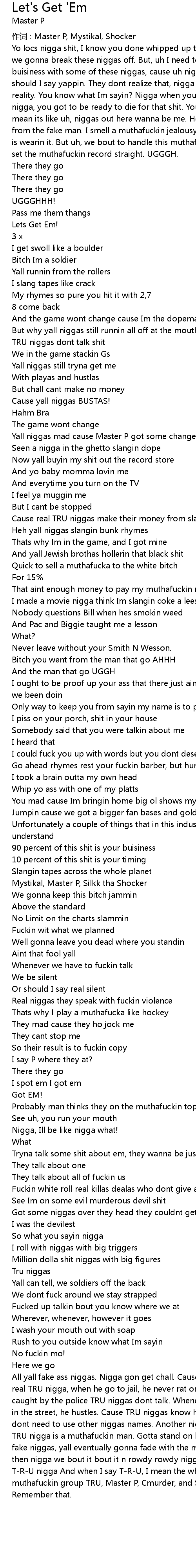 | 作词 : Master P, Mystikal, Shocker | |