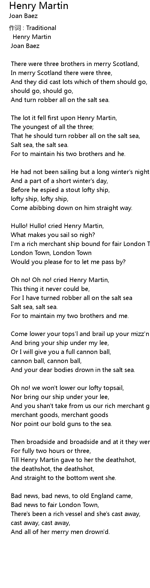 | Oh no! Oh no! cried Henry Martin, | |