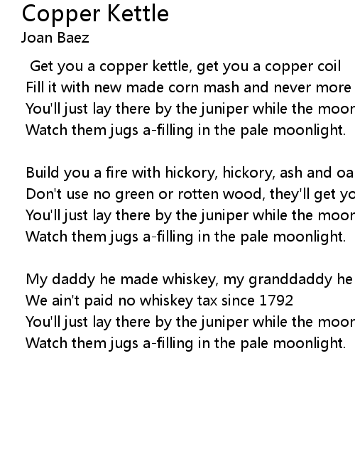 Get you a copper kettle, get you a copper coil |