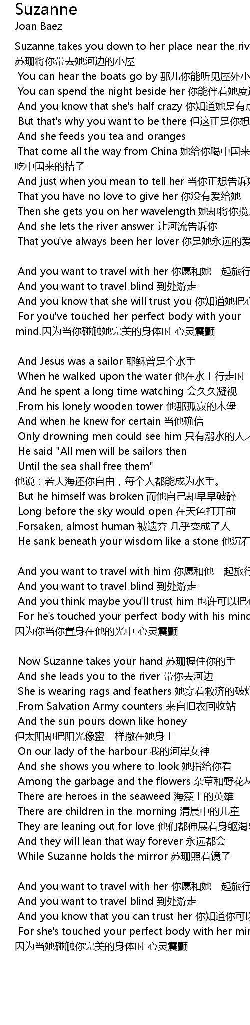 | Now Suzanne takes your hand 苏珊握住你的手 | |