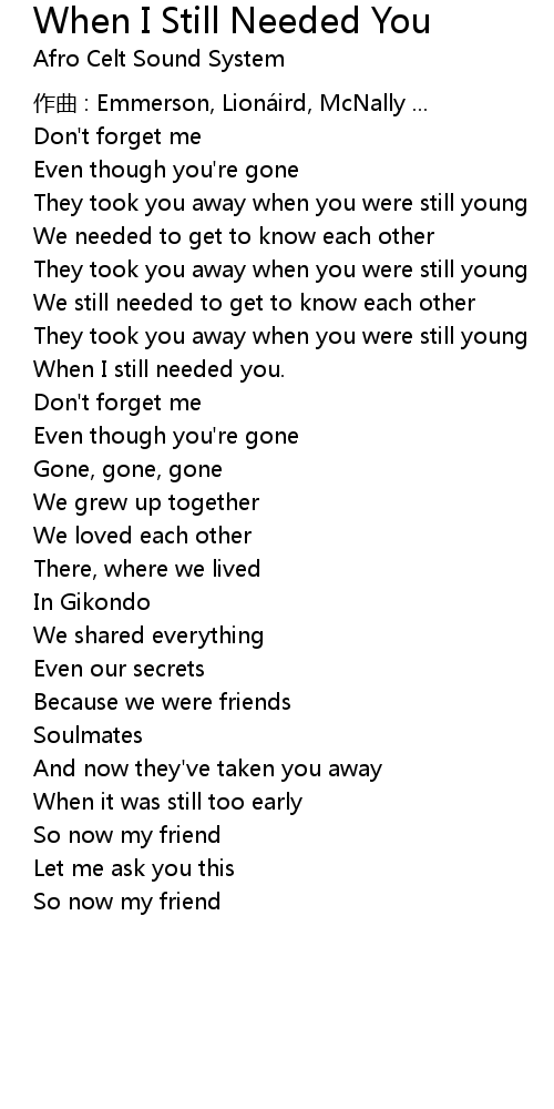 | 歌曲 | When I Still Needed You |