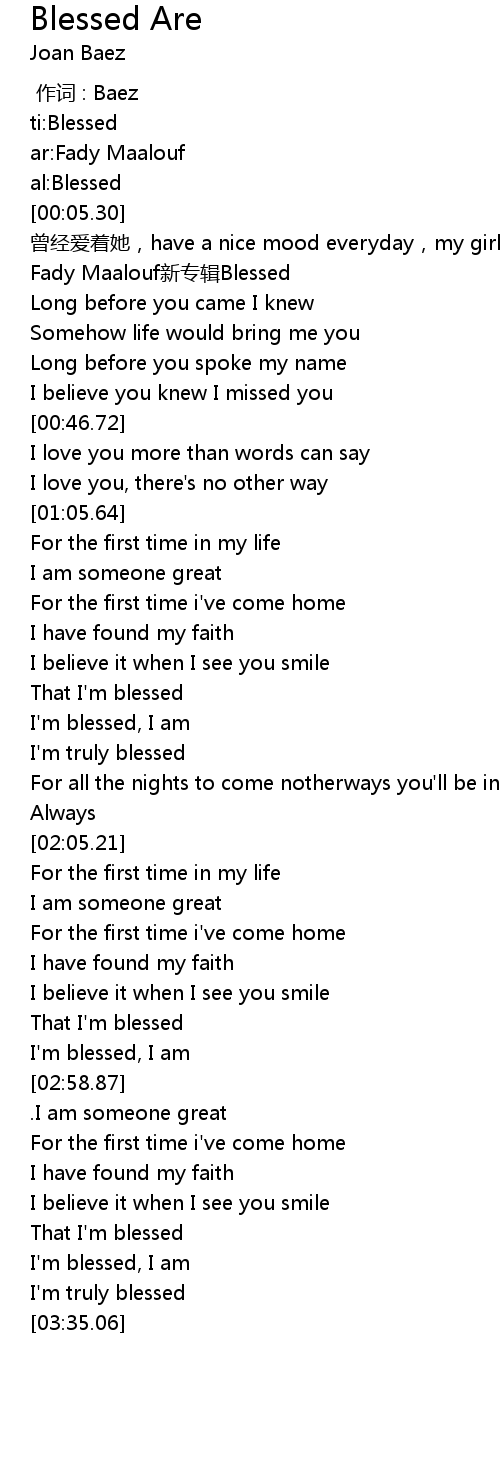 | [00:00.00] | ti:Blessed |