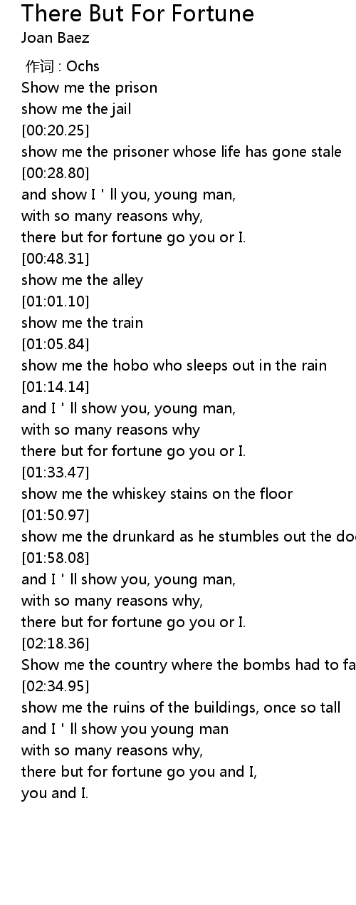 | [01:06.47] | show me the hobo who sleeps out in the rain |