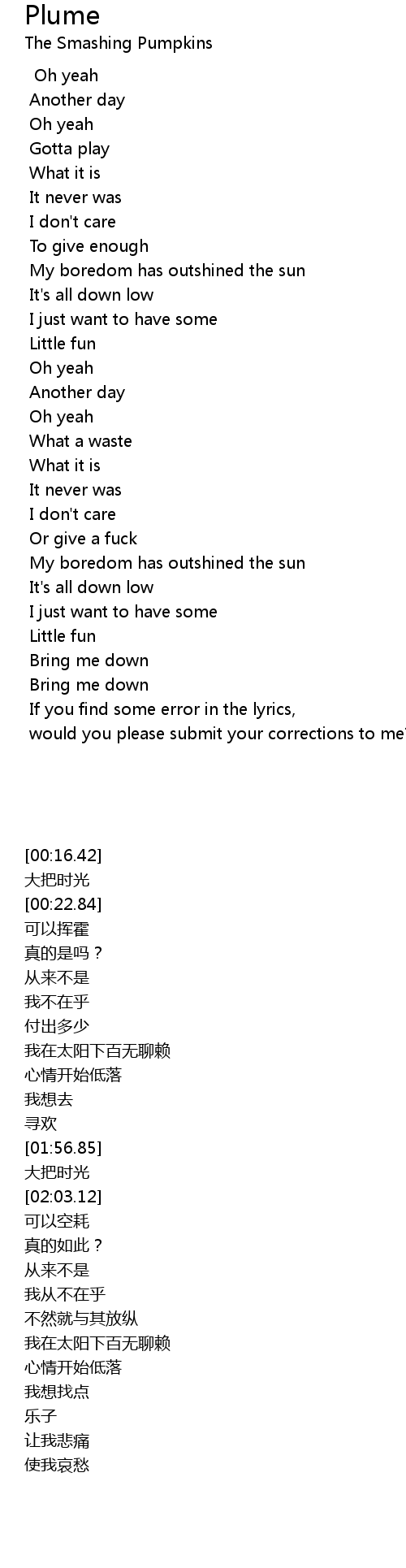 | [00:46.21] | 我在太阳下百无聊赖 |