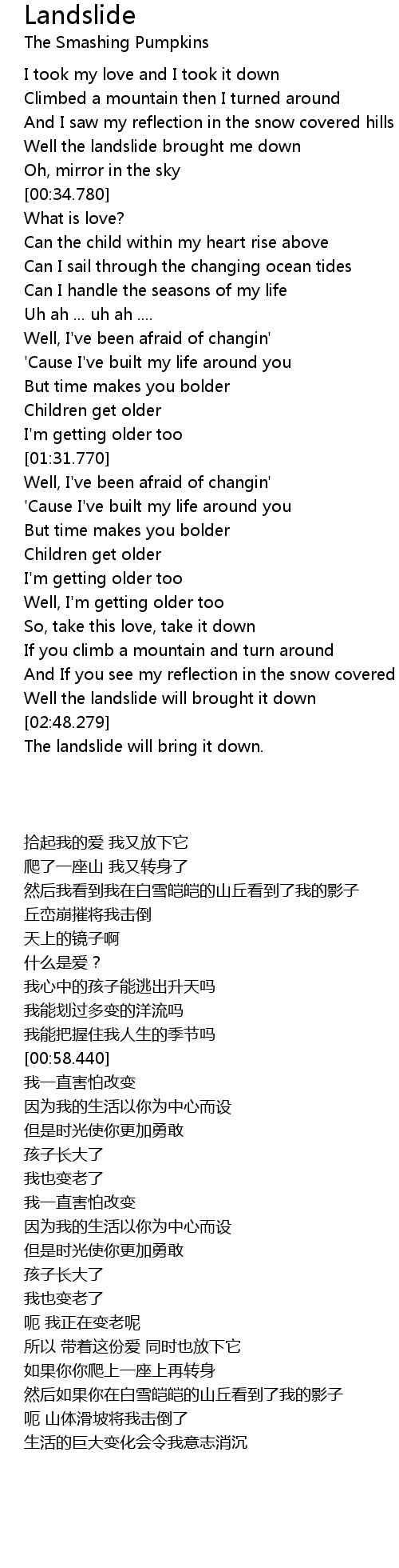 | [00:28.590] | Well the landslide brought me down |