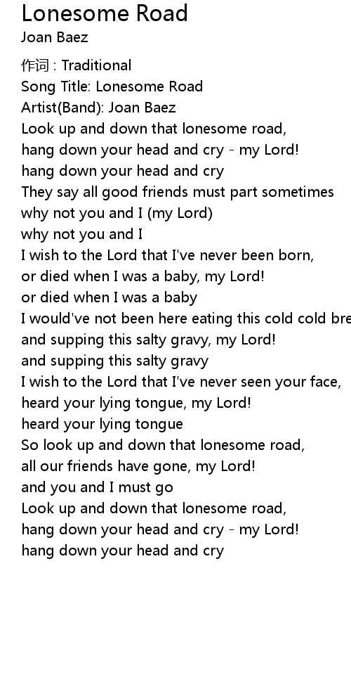 | Song Title: Lonesome Road | |