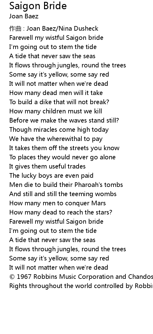 | 作曲 : Joan Baez/Nina Dusheck | |