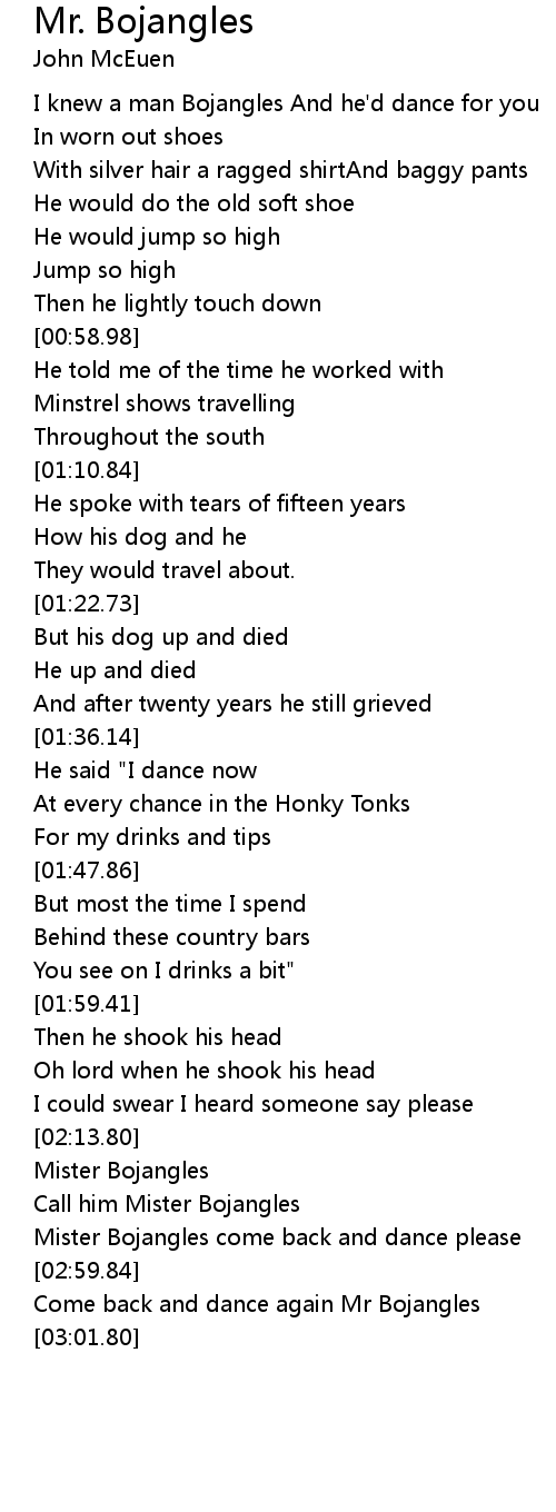 [00:24.71] I knew a man Bojangles And he'd dance for you
