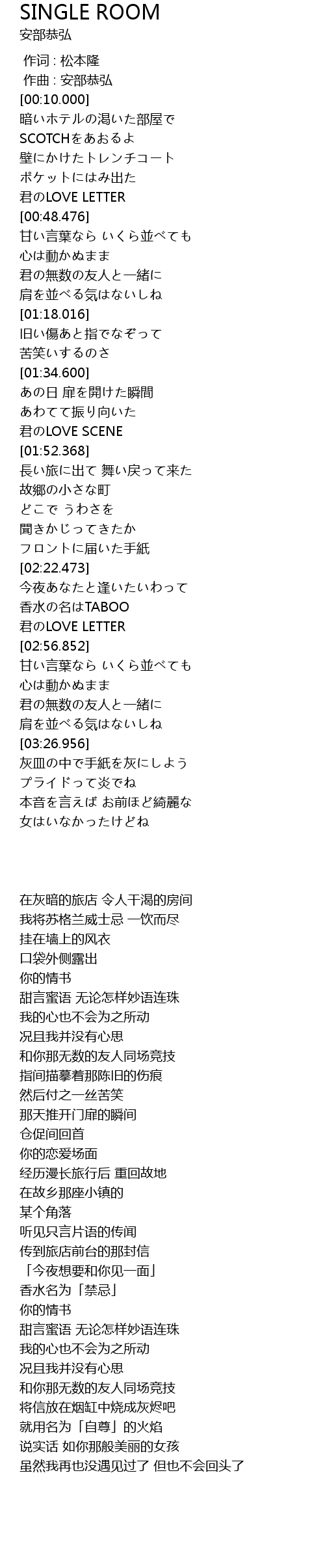 | [03:30.614] | 将信放在烟缸中烧成灰烬吧 |