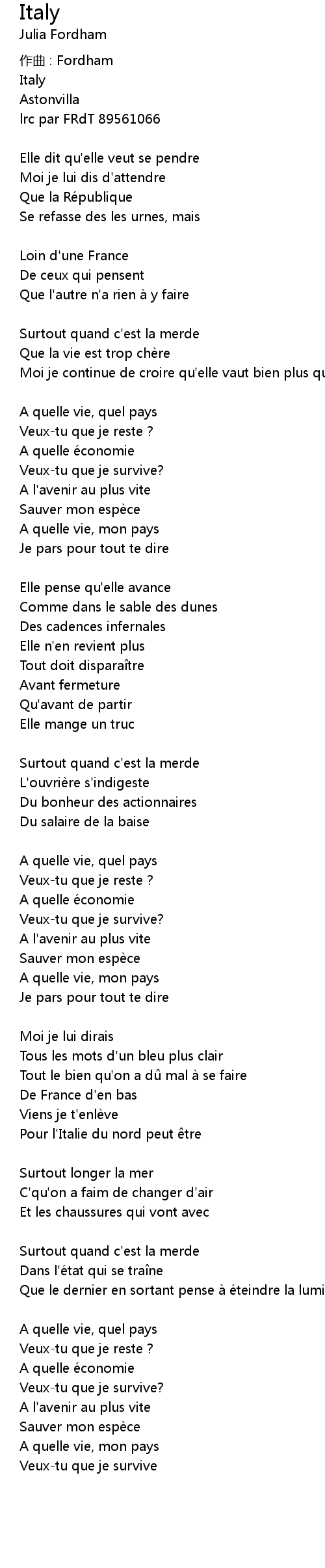 | 歌曲 | Italy |