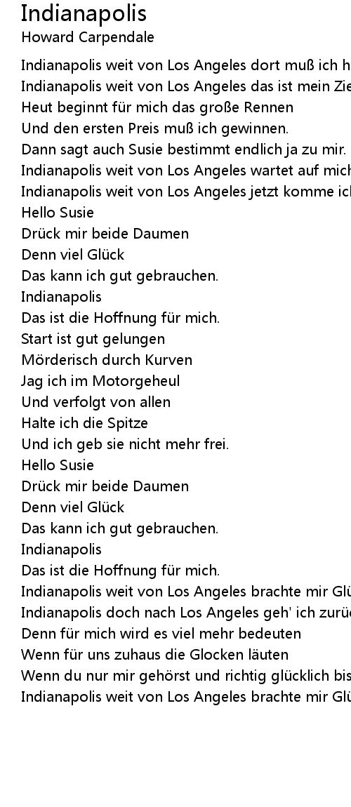 | Indianapolis weit von Los Angeles dort muß ich hin | |