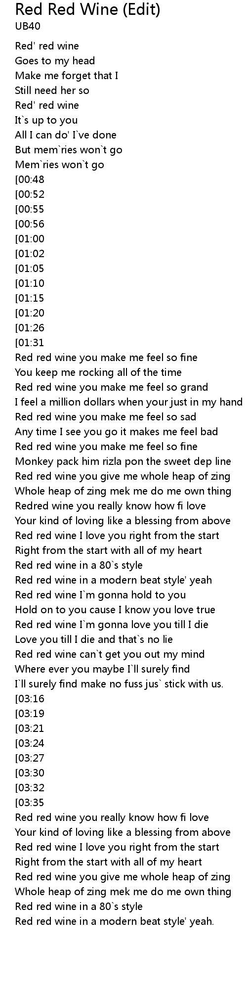 Red red wine you really know how fi love |