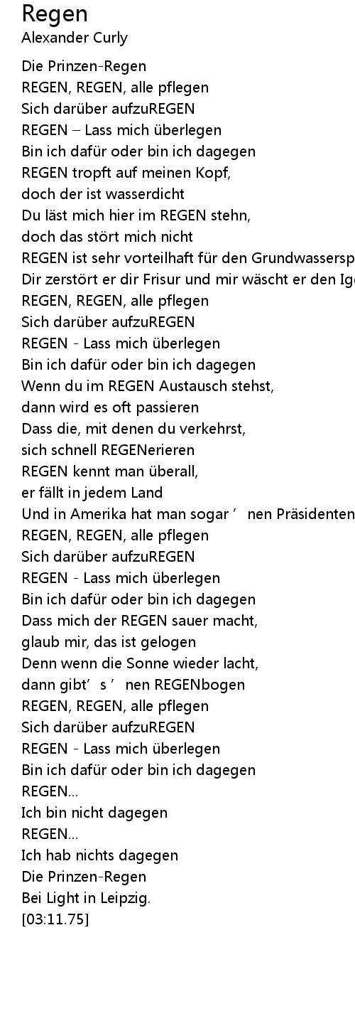 | [00:03.77] | REGEN, REGEN, alle pflegen |