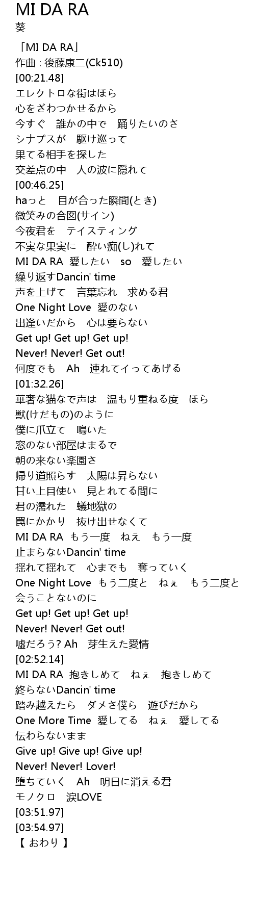 | [00:01.48] | 「MI DA RA」 |