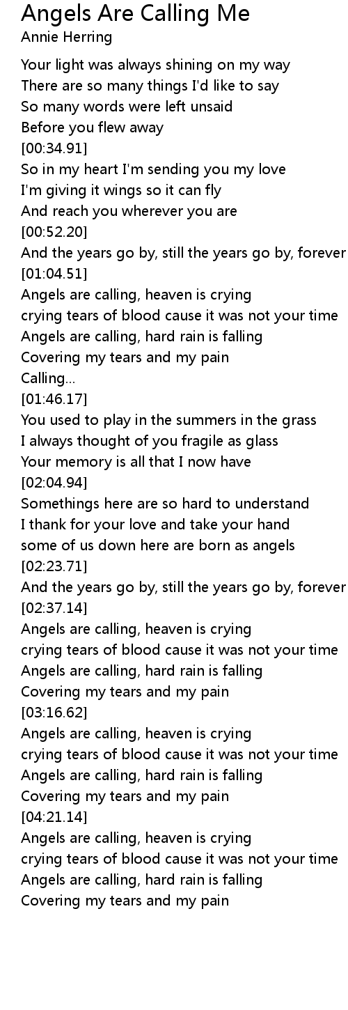 Angels are calling, heaven is crying |