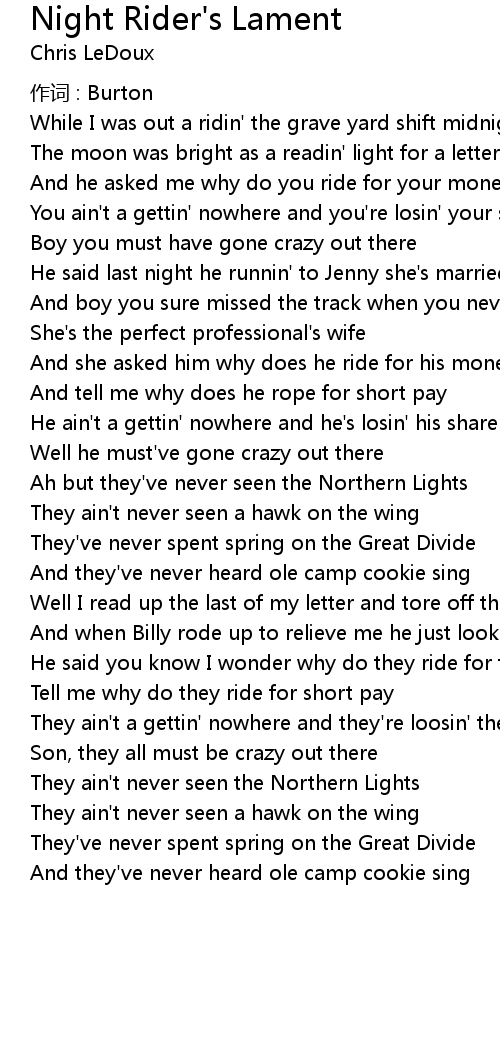 | 歌曲 | Night Rider's Lament |