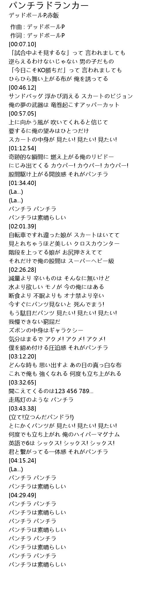 | [04:03.13] | 君と繋がってる一体感 それがパンチラ |