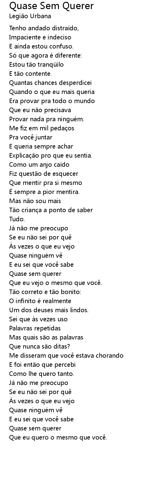 | 歌曲 | Quase Sem Querer |