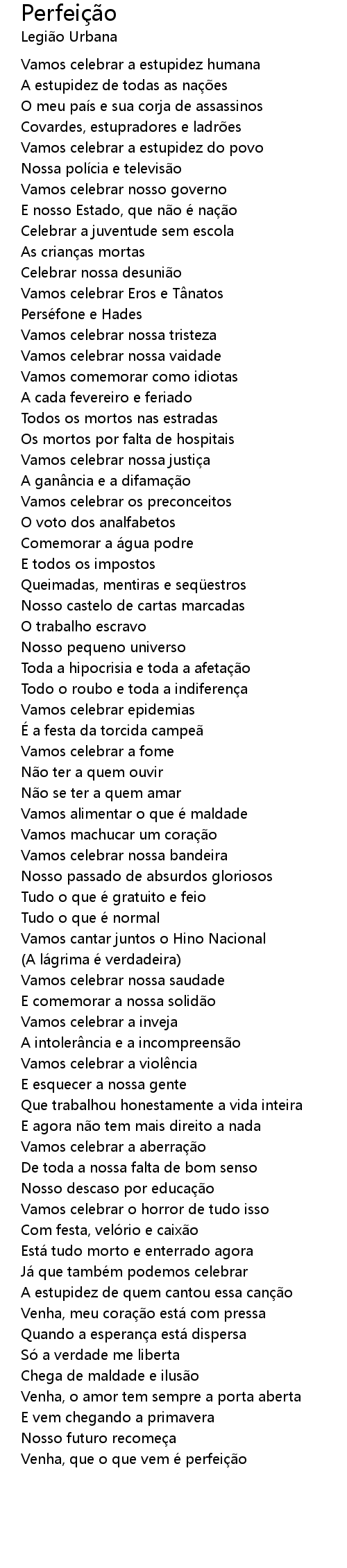 | 歌曲 | Perfeição |