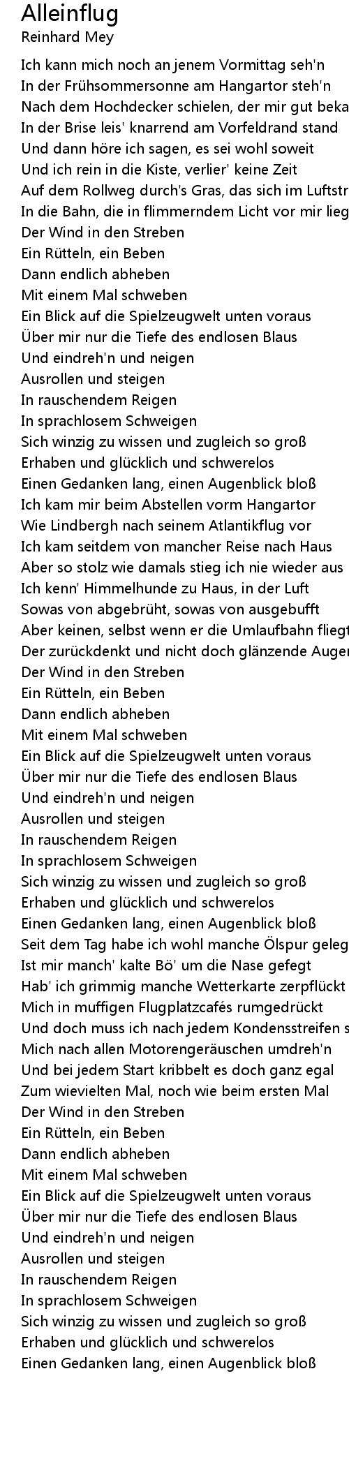 | Und doch muss ich nach jedem Kondensstreifen seh'n | |