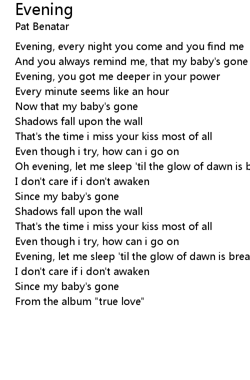 Evening, let me sleep 'til the glow of dawn is breaking |