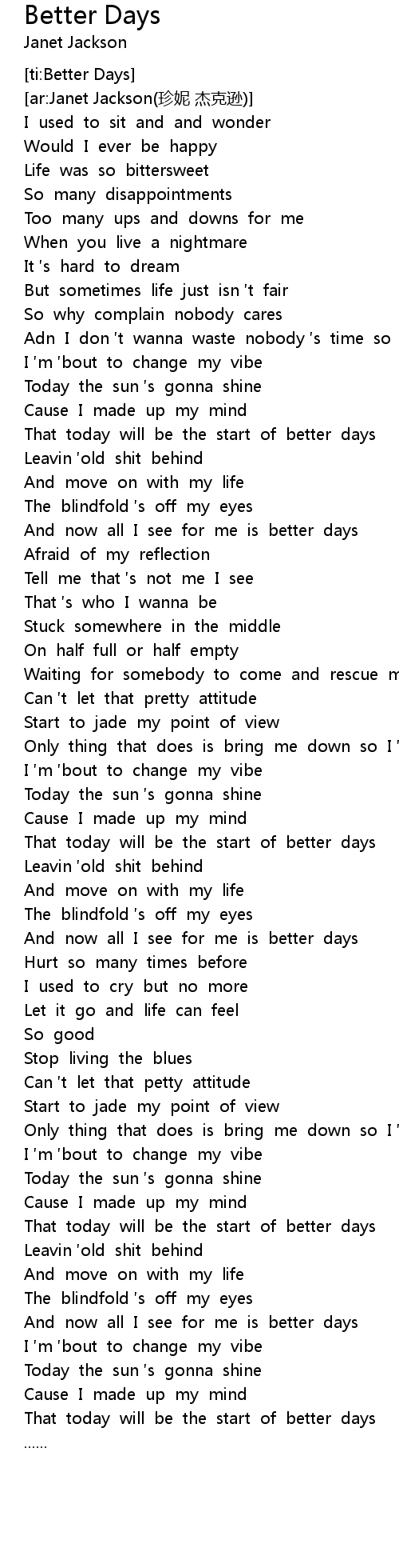 | [00:41.65] | I ′m ′bout to change my vibe |