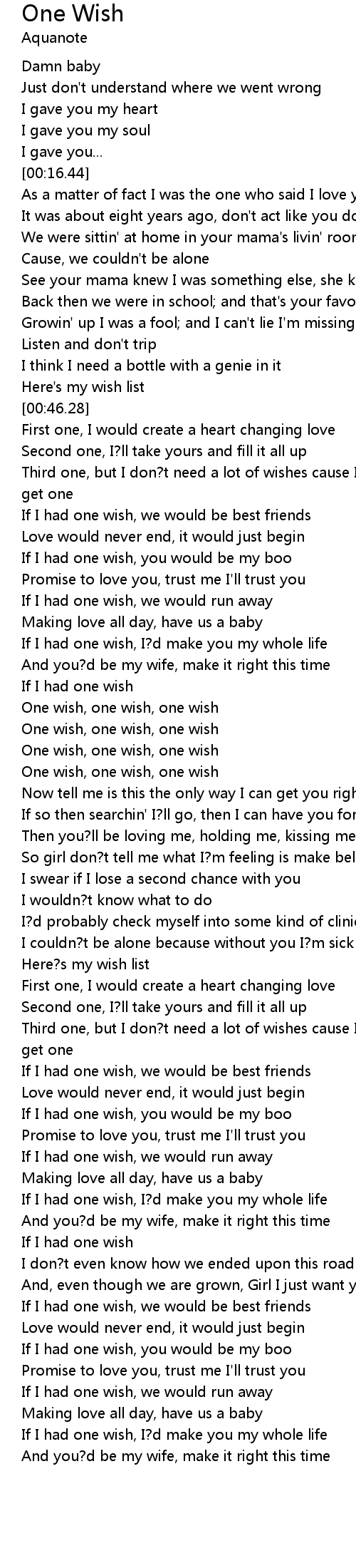 | [00:52.94] | Third one, but I don?t need a lot of wishes cause I?ll be okay if I get one |