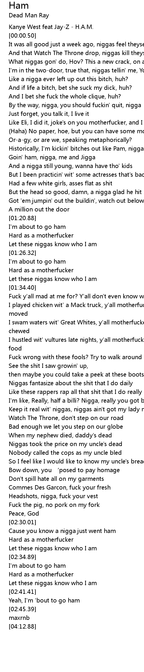 | [00:-01.00] | Kanye West feat JayZ H. A. M. |
