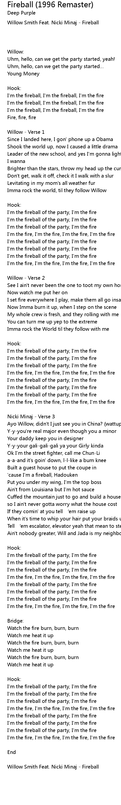 | Willow Smith Feat. Nicki Minaj Fireball |