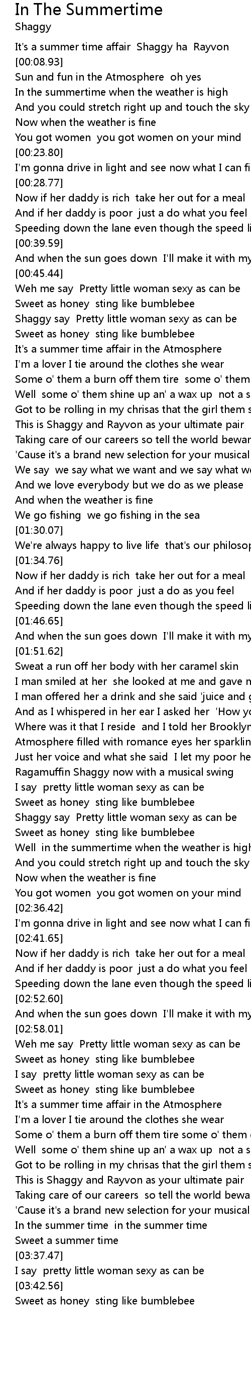 It's a summer time affair Shaggy ha Rayvon |
