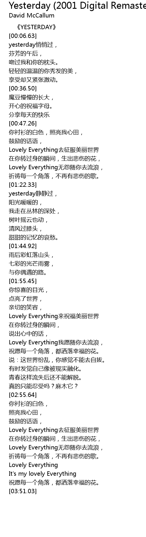 | [00:02.23] | YESTERDAY |