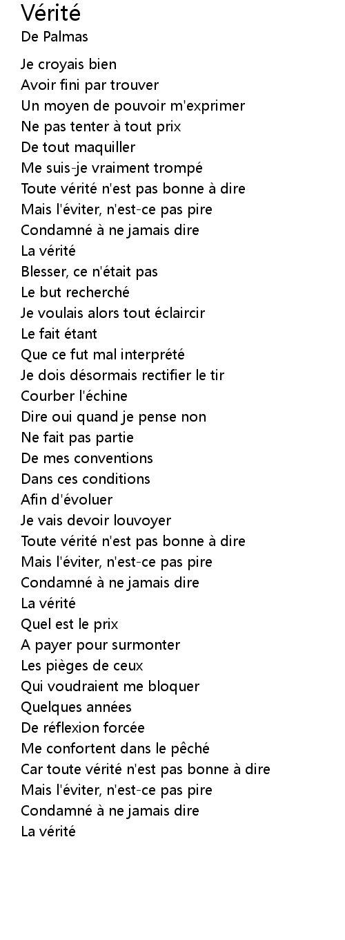 | Car toute ve rite n' est pas bonne a dire | |