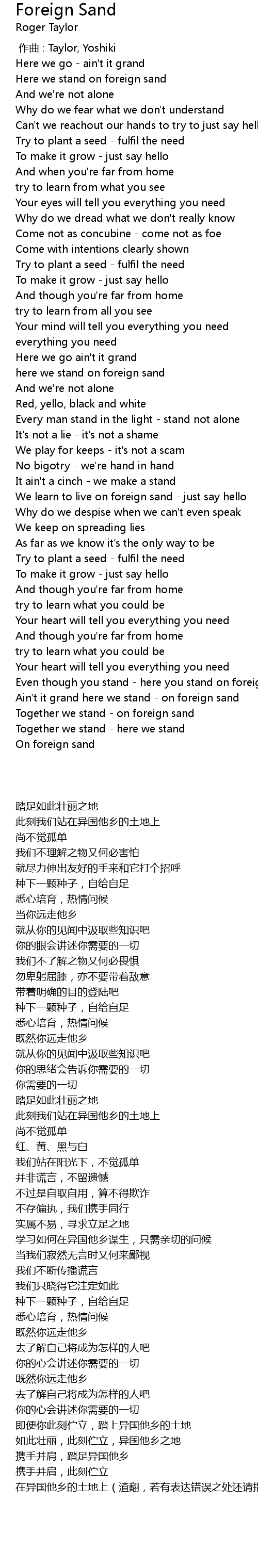 | [05:32.18] | Even though you stand here you stand on foreign sand |