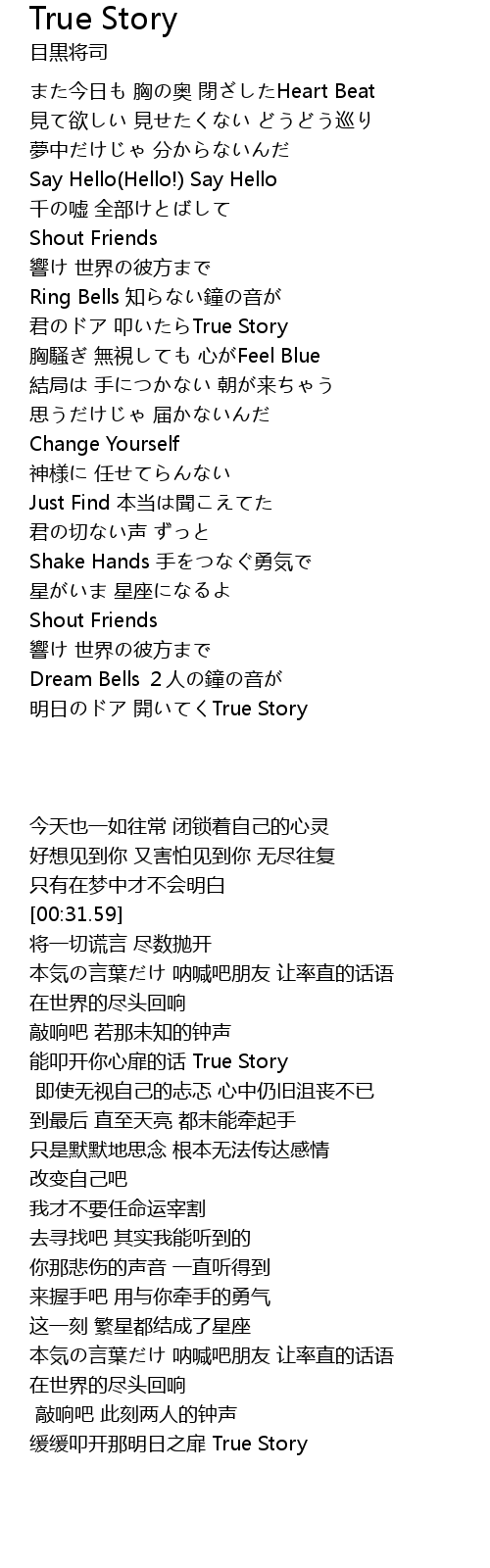 | [02:53.84] | 缓缓叩开那明日之扉 True Story |