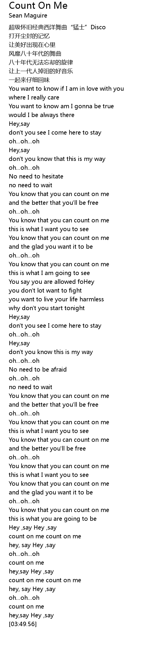 | [03:45.77] | count on me |