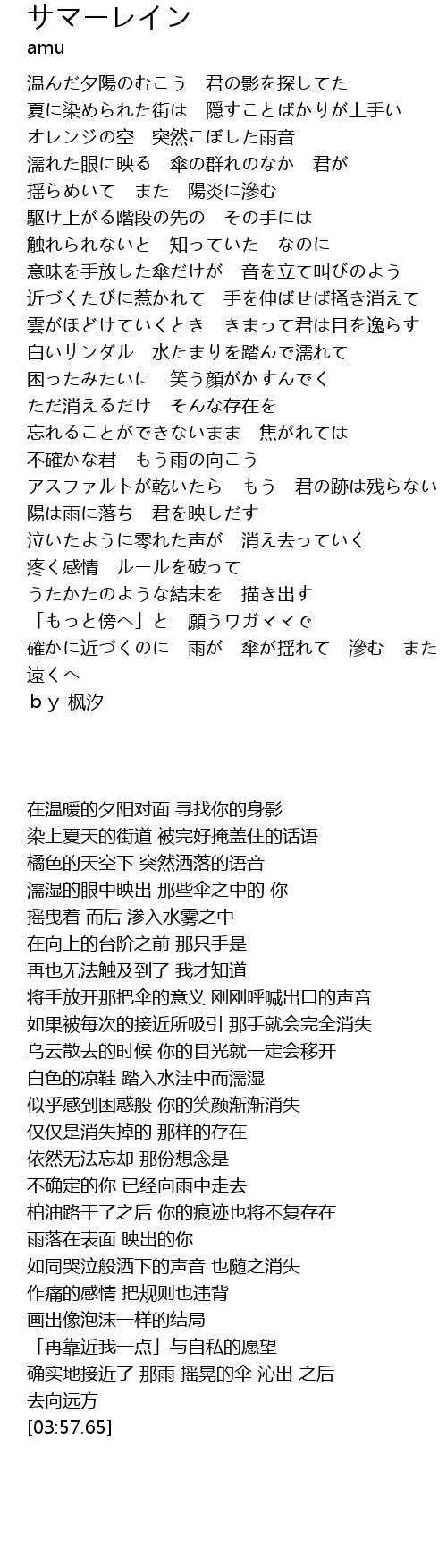 | [02:55.73] | 陽は雨に落ち 君を映しだす |
