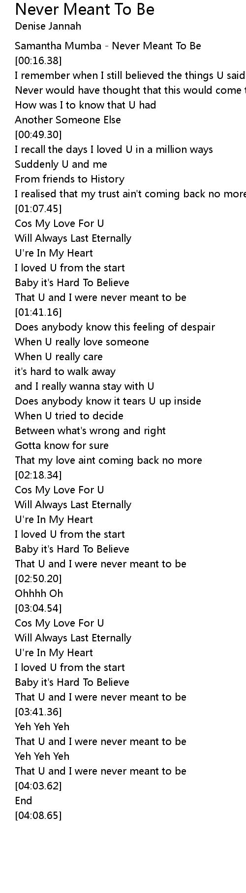 Samantha Mumba - Never Meant To Be |