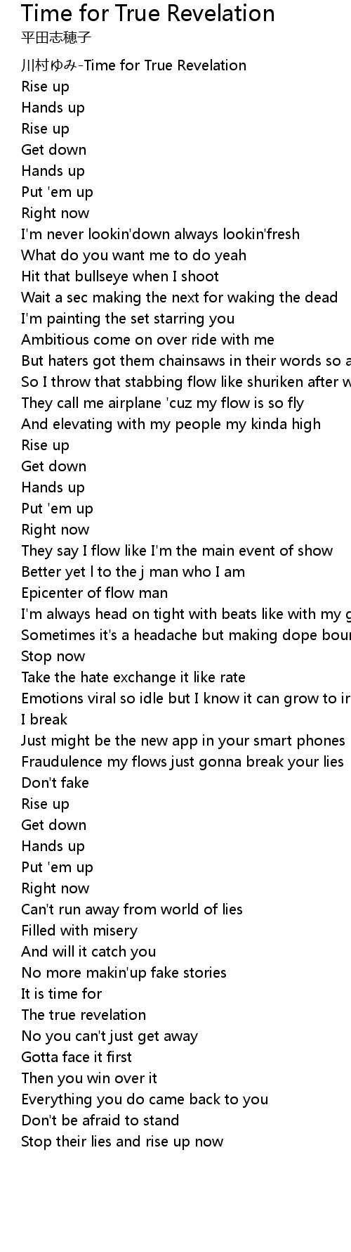 | [00:00.49] | chuān cūn Time for True Revelation |